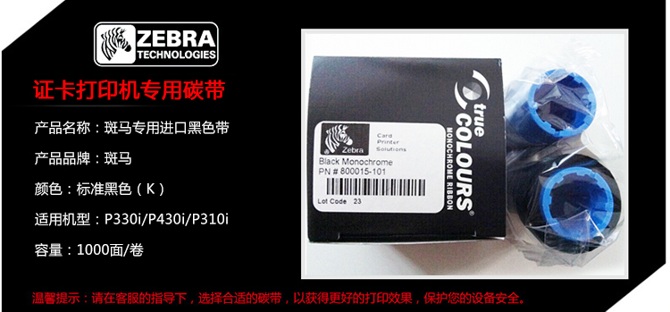 斑马 800015-101 证卡打印机色带 黑色 (适用 P - 陵水嘉迅网络科技有限公司